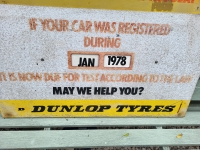 This Dunlop metal sign is the one they had outside MOT stations telling you the month and year your car needed an MOT .