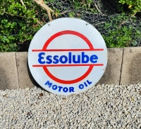 This ESSOLUBE sign from 1933 has seen some wear over the years and allthough it has lost some of its shine it is a surviver of a bygone era and looks great on diplay .
