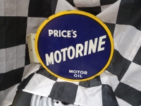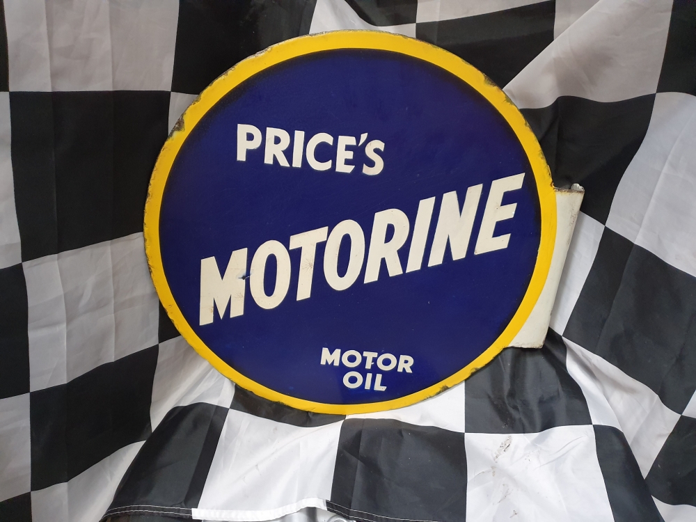 Motorine double sided enamel RARE sign with side flange which has had restoration and displays so well 18 inches