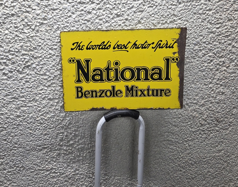 National Benzole DOUBLE SIDE Original ENAMEL sign with side bracket