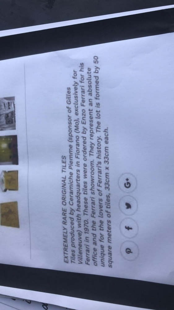 ENZO FERRARI , here we have a great piece of motoring history , it is a wall tile from Enzo Ferrari's office , these were displayed on the wall behind his desk in the 1970's and when refurbishment took place they were removed and sold in lots .